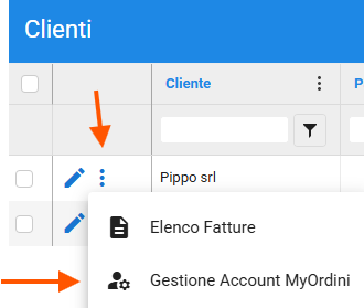 Vai in Anagrafica Cliente 🠖 Gestione Account MyOrdini 🠖 Aggiungi